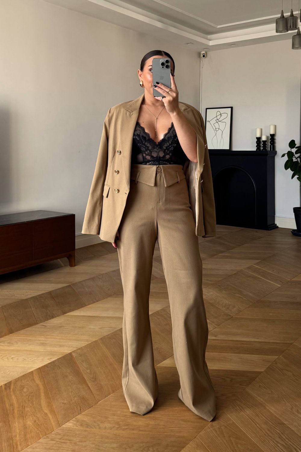 Clássicas, elegantes e com um toque de originalidade. As calças camel de corte direito destacam-se pelo cós com dobra diferenciada, inspirado no estilo gola de camisa, um detalhe moderno que eleva o design e traz sofisticação ao visual.